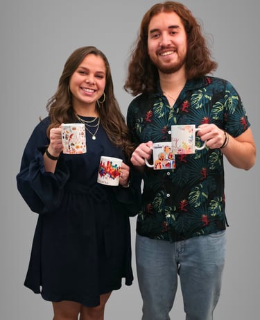 Comenzamos este viaje con tazas, transformando simples piezas de cerámica en lienzos donde plasmamos creatividad pura. Sin embargo, nuestro sueño ha ido creciendo junto con nuestra comunidad. Lo que empezó en un escritorio en nuestro cuarto hoy se expande: mantenemos nuestra esencia en cada taza, pero hemos abierto las puertas a nuevos productos y posibilidades para que la personalización no tenga límites.